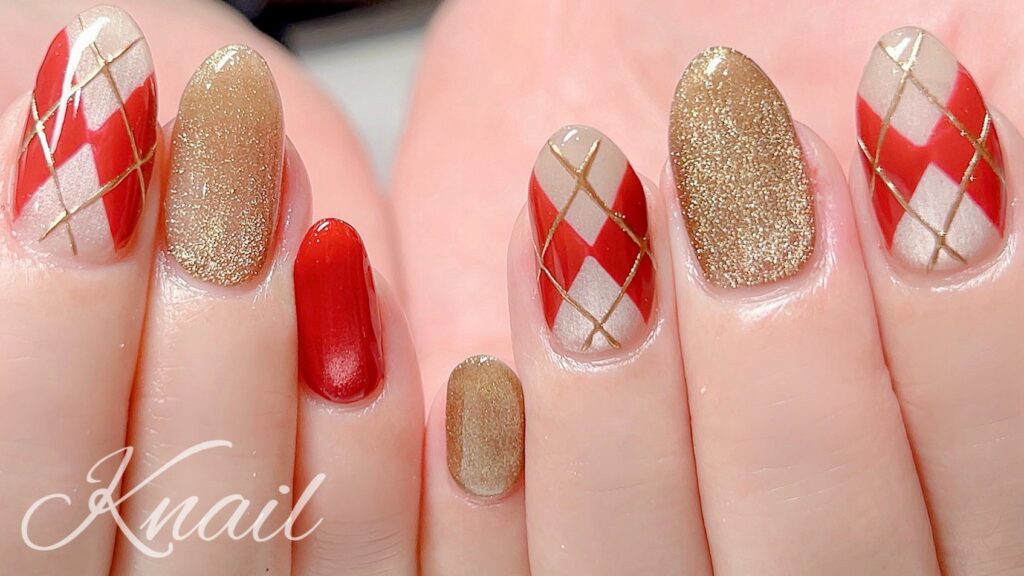 (ハンド☆キャンペーン)レッド×アーガイルネイル♪