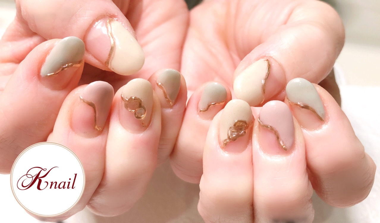 (キャンペーン)ピンクグレー×変形フレンチ♪