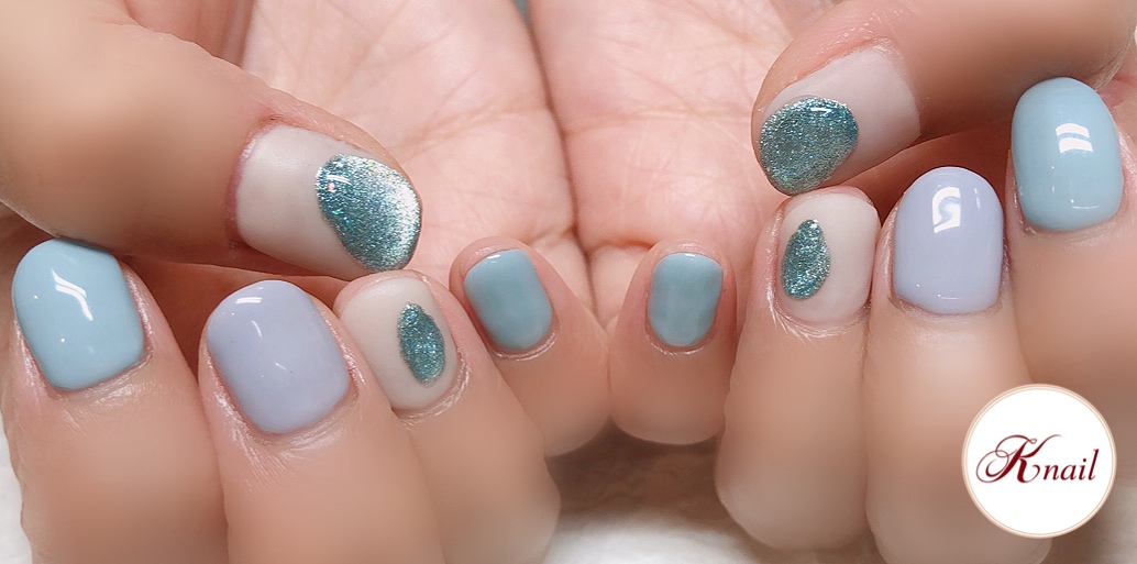 (キャンペーン)ブルー×ぷっくりキラキラネイル♪