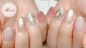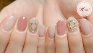 くすみ感のあるピンクやクリーミーなベージュやベージュピンクをあわせたふんわりかわいいお手元になりました!
