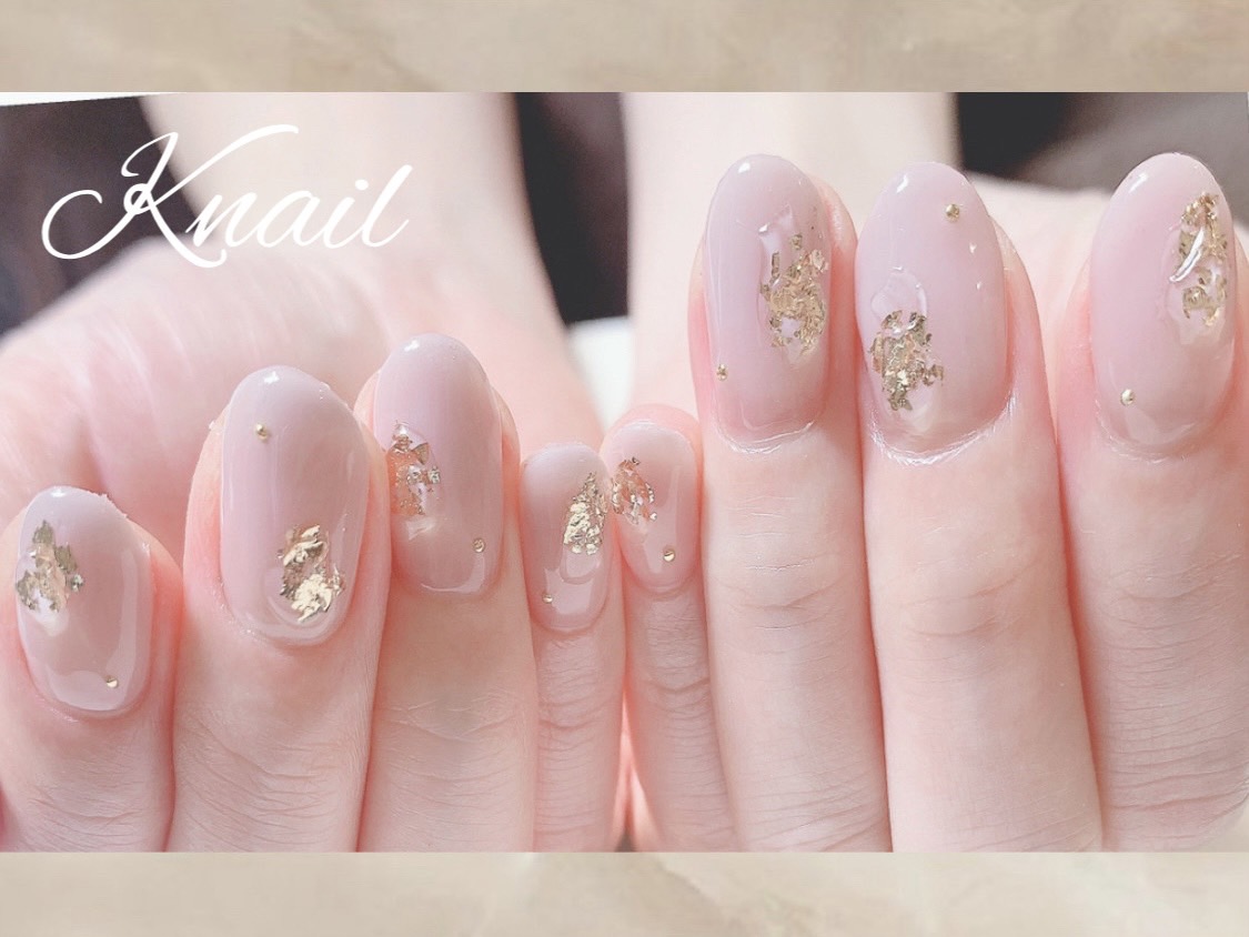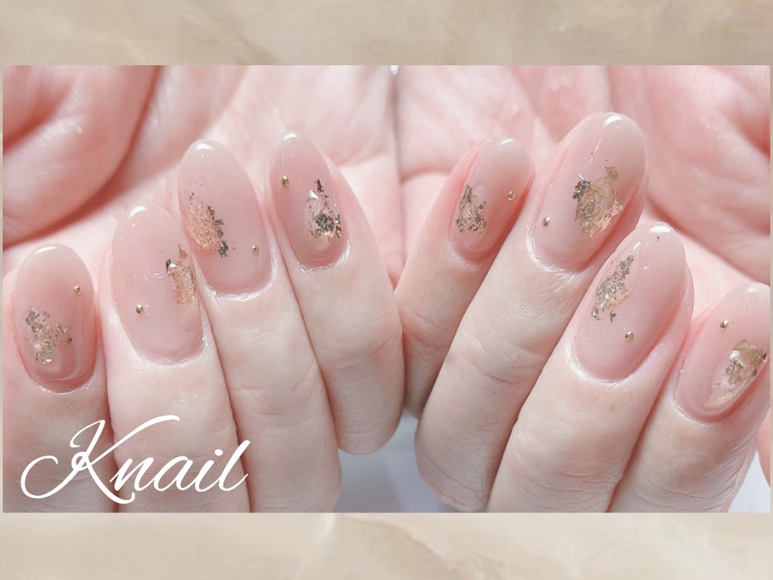 金箔のアートにぷっくり感を足したアートになります♪ポイントに小さなスタッズが乗ってとてもシンプルですが可愛くて人気のアートになっています♪