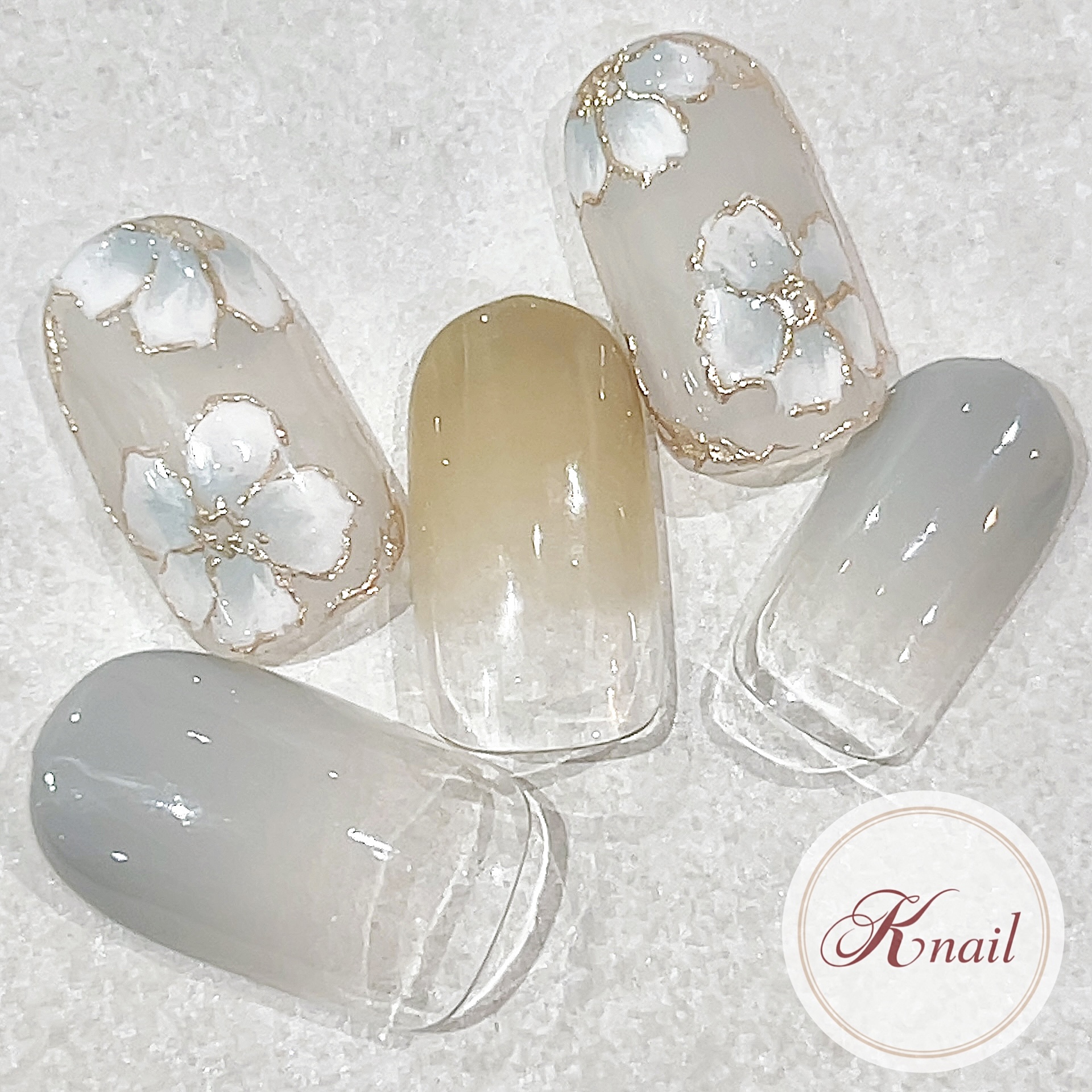 今月のキャンペーンジェルネイルをされたお客様のデザインをご紹介いたします。