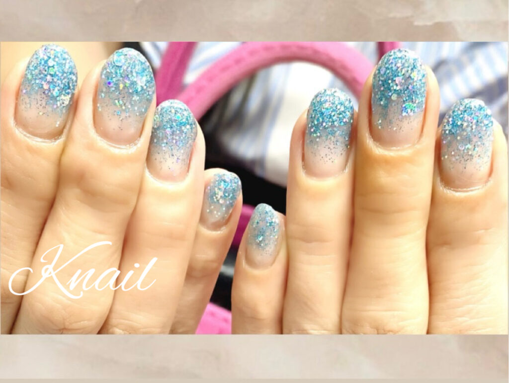 (ハンド☆シンプル)ブルー×ラメホログラデーション♪