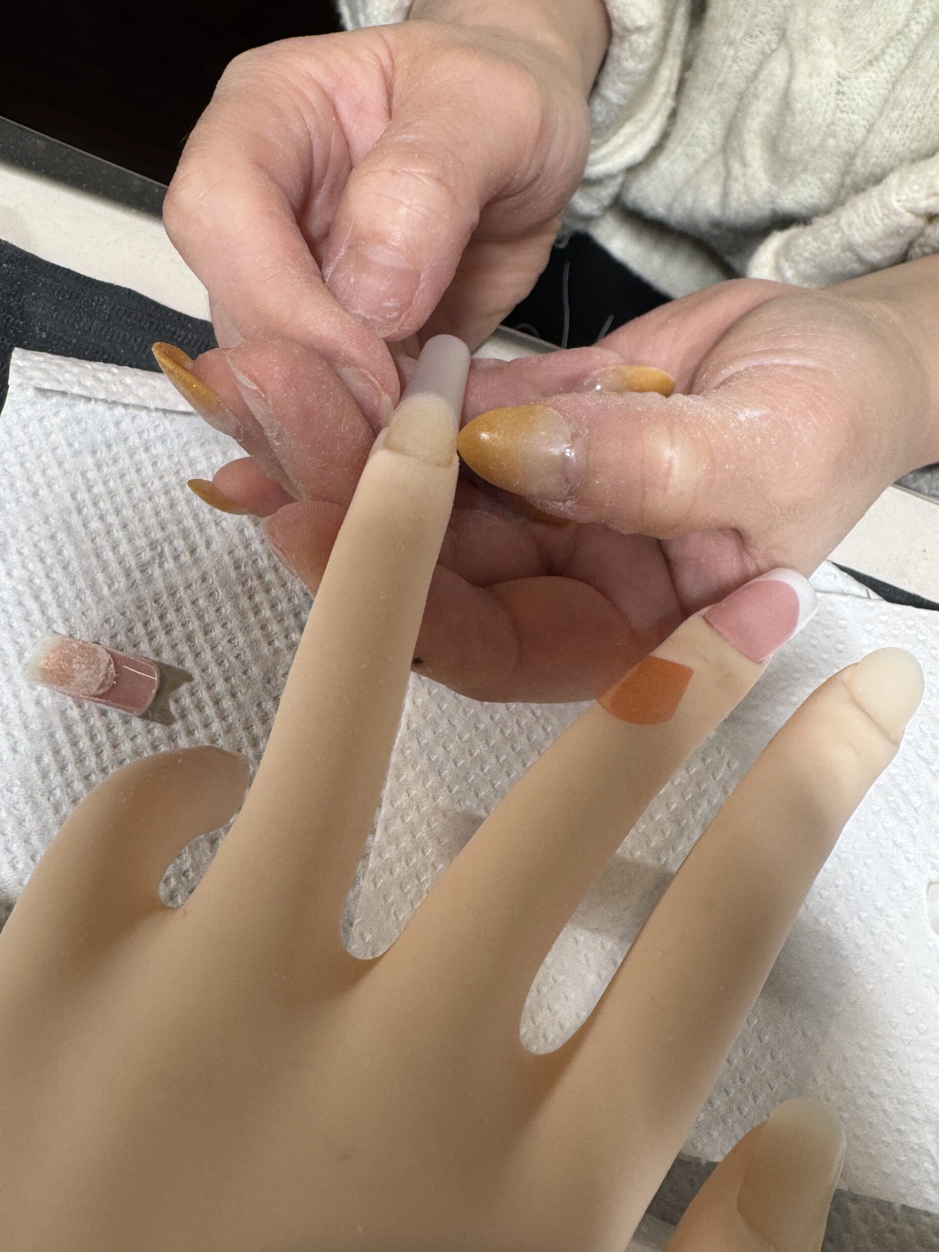 今日は4月に受験予定の3級、2級のレッスンと、ジェル検定上級、スカルプチュアのレッスンを行いました