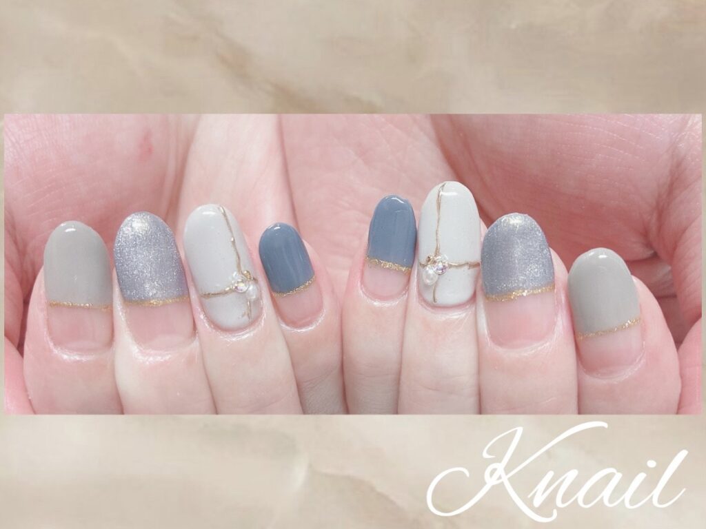落ち着いたブルーで大人ネイルの完成です!!