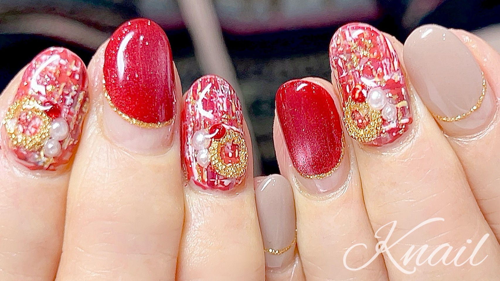 バルーンフレンチで抜け感をプラスし、「赤に挑戦したいけれど、少し落ち着きも欲しい」という方にぜひおすすめしたい組み合わせです♪