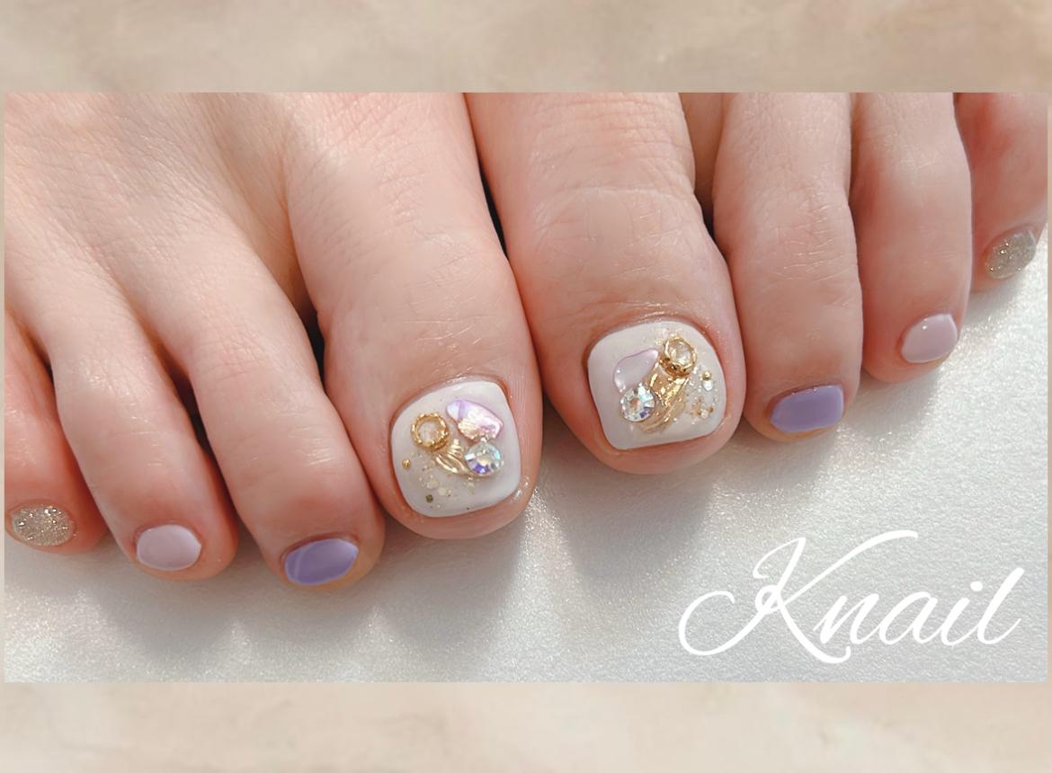 少し明るめのパープルに変更して夏らしい明るいネイルになりました♪