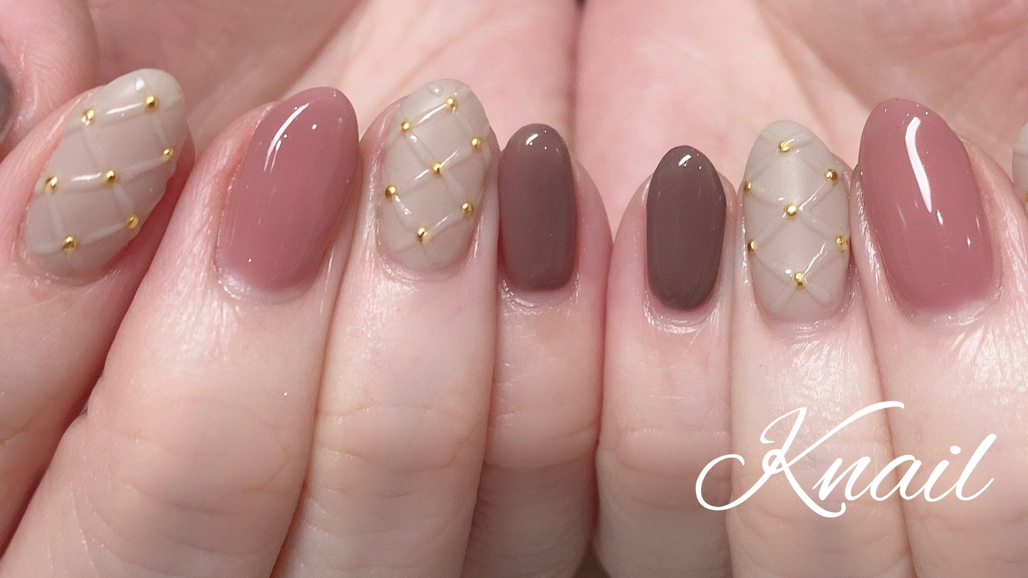 チョコブラウン×くすみ系ピンクの大人かわいいカラーの組み合わせでバレンタインイベントネイルも準備バッチリです♪