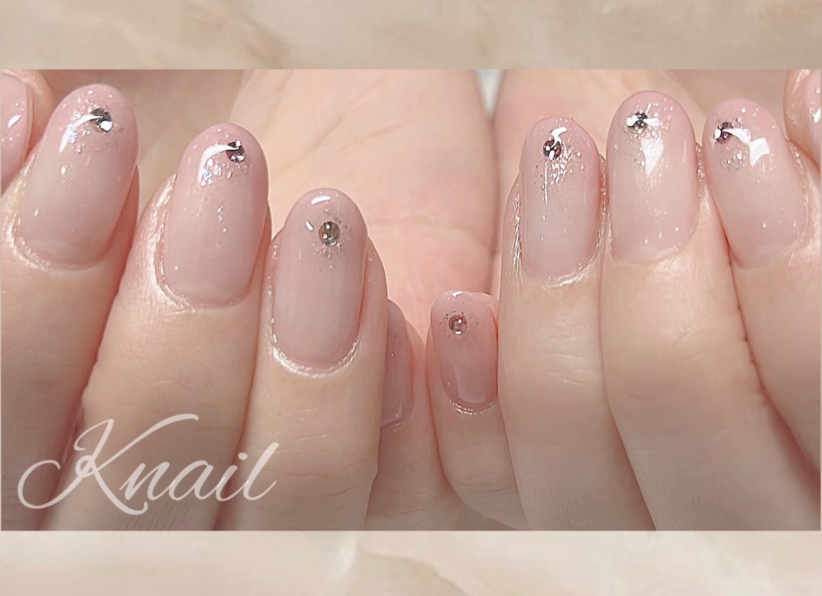 繊細なラメの上にストーンが入ったワンランク上のシンプルだけど華やかなネイルになります♪