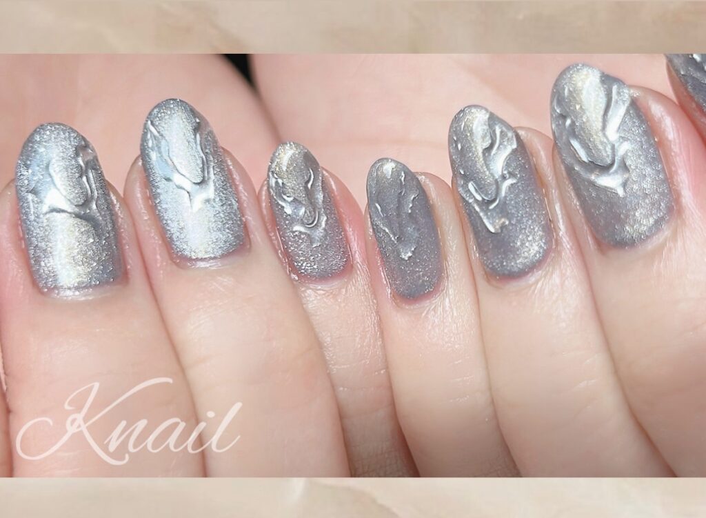 トレンドのちゅるんとしたマグネットの大人な雰囲気ネイルです☆