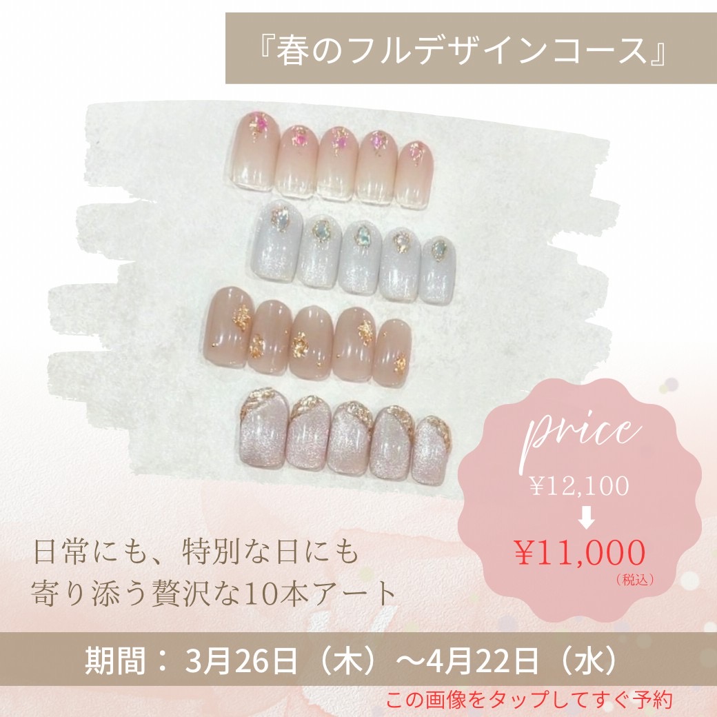 新しい季節の始まりに、自分へのご褒美ネイルはいかがでしょうか?