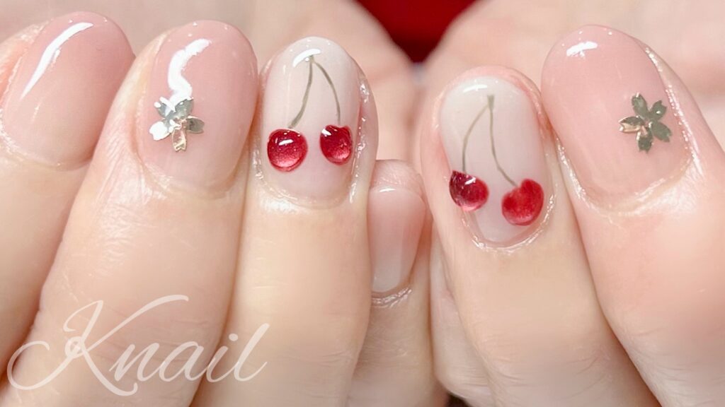 ぷっくり立体感あるさくらんぼをナチュラルカラーにのせて大人かわいいデザインです!