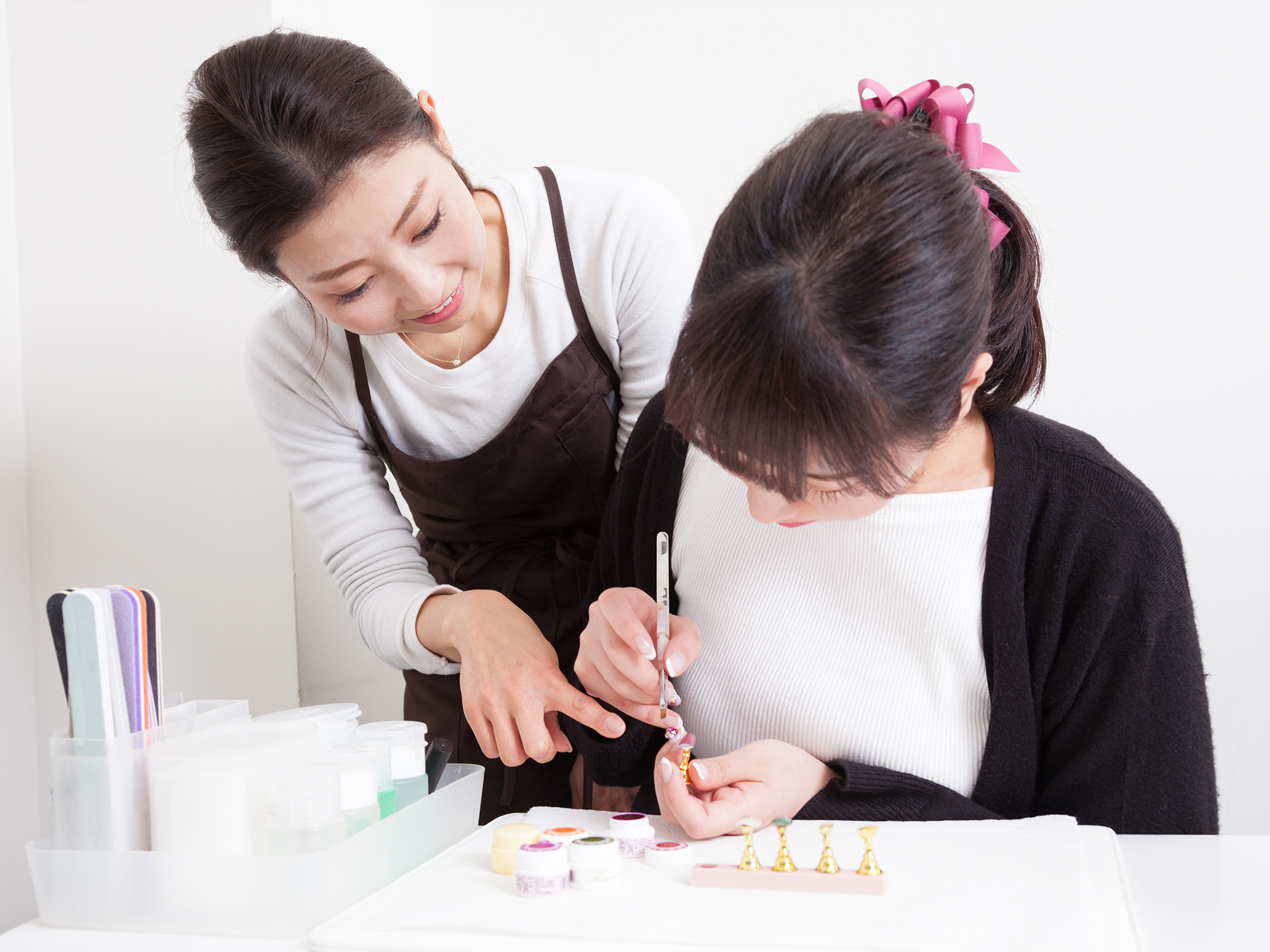 当スクールでは、20年以上のサロンワーク経験と数々のコンテスト入賞経験を持つ現役ネイリストが直接指導にあたります。さらに講師は、15年以上にわたり大手ネイルスクールや美容専門学校で講師を務めてきた経験豊富な指導者です。これまで数千人もの生徒さん一人ひとりの悩みに寄り添い、共に解決しながら、多くのネイリスト育成に貢献してきました。